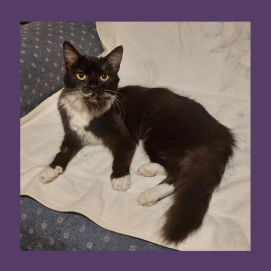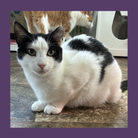 Oreo is about 7 months old. She is spayed, vaccinated, negative for FeLV/FIV, litter trained and microchipped