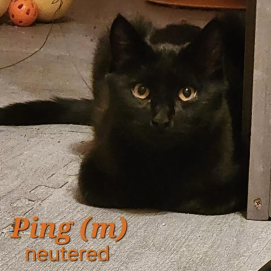Ping is about 7 months old, healthy, neutered, vaccinated, negative for FeLV/FIV, litter trained and microchipped