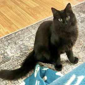 Shadow is about 6 months old, healthy, neutered, vaccinated, negative for FeLV/FIV, litter trained and microchipped.