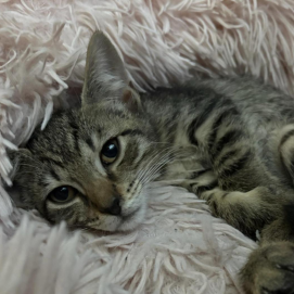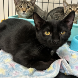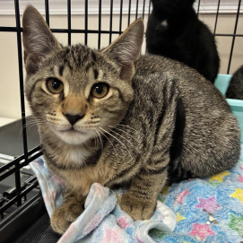 Toast is 2 to 3 months old. There are no known health concerns. He is vaccinated, negative for FeLV/FIV and litter trained.