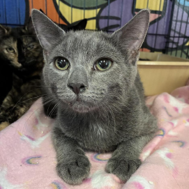 Toast is a soft grey sweetheart who’s still learning to come out of his shell. His brother found a home quickly, and now Toast is waiting for his turn.