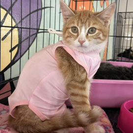 The foster mom reports that Turbo is a confident and curious little guy who loves to explore every corner of his world. When the adventure’s done, he’s happiest curled up beside you, purring