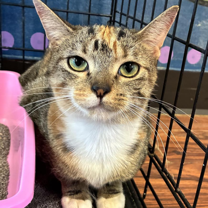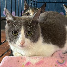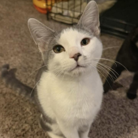 Trix is very friendly. She loves sitting on your lap and getting cuddles. Her favorite toys are springs and wand toys.