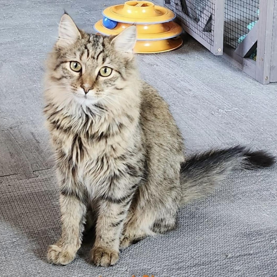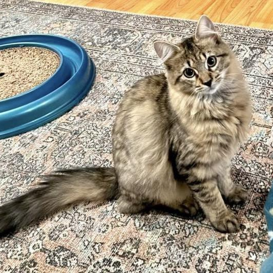 a bit reserved but is starting to play more, and sometimes walks around vocalizing for no apparent reason. Maple will need time to adjust to a new environment, and to become comfortable being held or