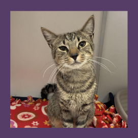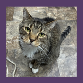 Salad is about 5 years old. There are no known health concerns. He is neutered, vaccinated, negative for FeLV/FIV, litter trained and microchipped. Due to an injury, Salad’s tail needed to be