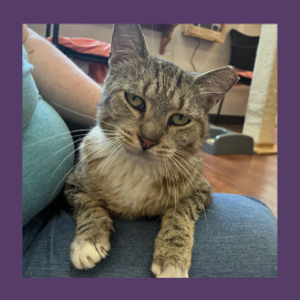 a 100% certified, grade A lap cat. Look my way, give me a little wave and I’ll come running. There’s no such thing as too much “you and me time”. I’m probably one of the most cuddly cats you’ll ever