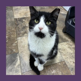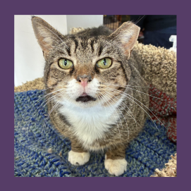 Snoopy is an adorable, young boy who has a lot of kitten energy. He is alert, curious and playful. Snoopy is affectionate and he tolerates other cats. He enjoys petting but can get easily