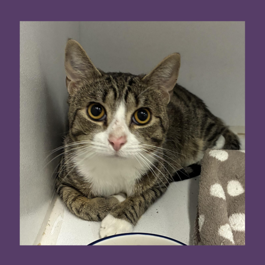 will be great if adopted with one of his current feline friends or if you have a friendly cat who needs a companion.