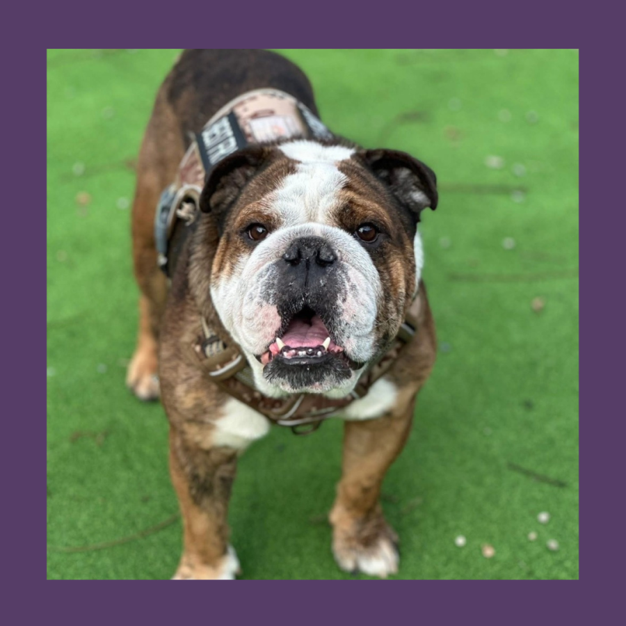 Dulce has overcome so much. This sweet girl was found as a bald and skinny stray in rough condition who is now a happy and chunky girl. She was also treated for a rectal prolapse. Dulce is adorable and sweet but your typical bully breed…very stubborn and bossy. We are looking for a home with bulldog experience. She weighs around 60 lbs.