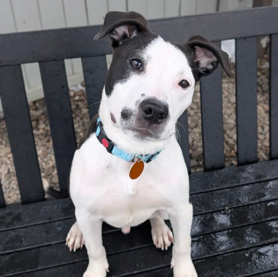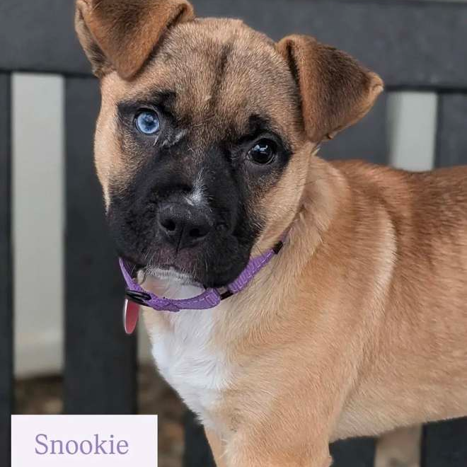 Despite everything she’s been through, Noel is a well-adjusted, happy puppy. She’s dog-friendly, kid-friendly, and absolutely adores being with her people. Her PA foster mama says Noel is the kind of